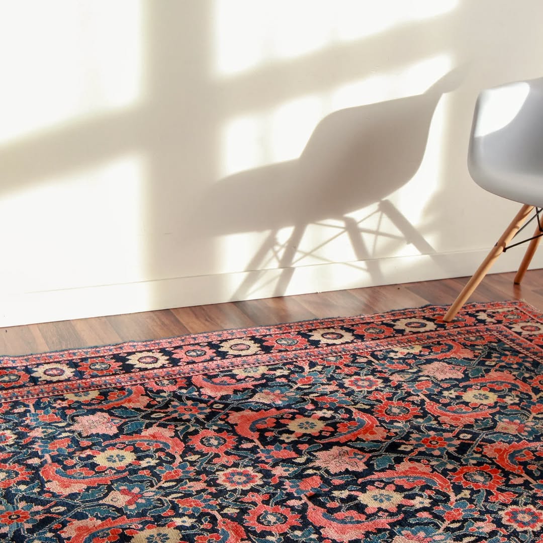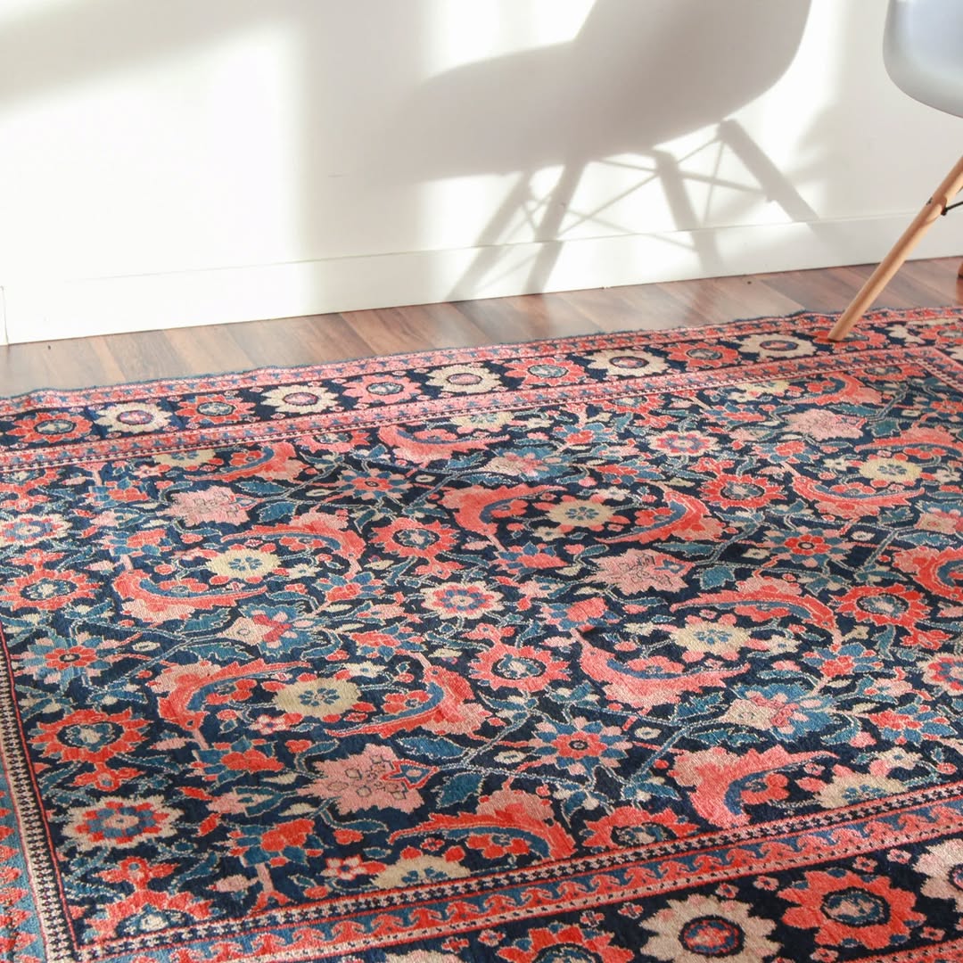 A finely woven Senneh with the classic Herati (fish-in-a-pond) design rendered in tight, precise knotwork characteristic of Kurdish artisans from the Sanandaj region. The allover repeat pattern creates a rich, textile-like surface that rewards close inspection. Small palmettes, curving leaves, and diamond lattice interlock across the field in deep indigo, soft rose, and warm ivory on an abrash-rich ground. The weave density is notably high for a tribal piece, giving the design unusual clarity and refinement. Even low pile speaks to decades of use, but the foundation remains sound and the piece retains its full structural integrity.